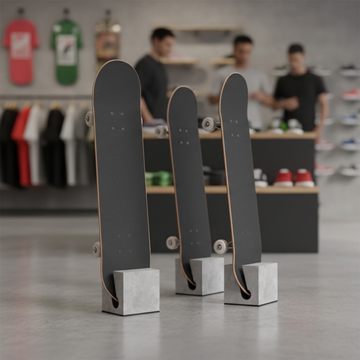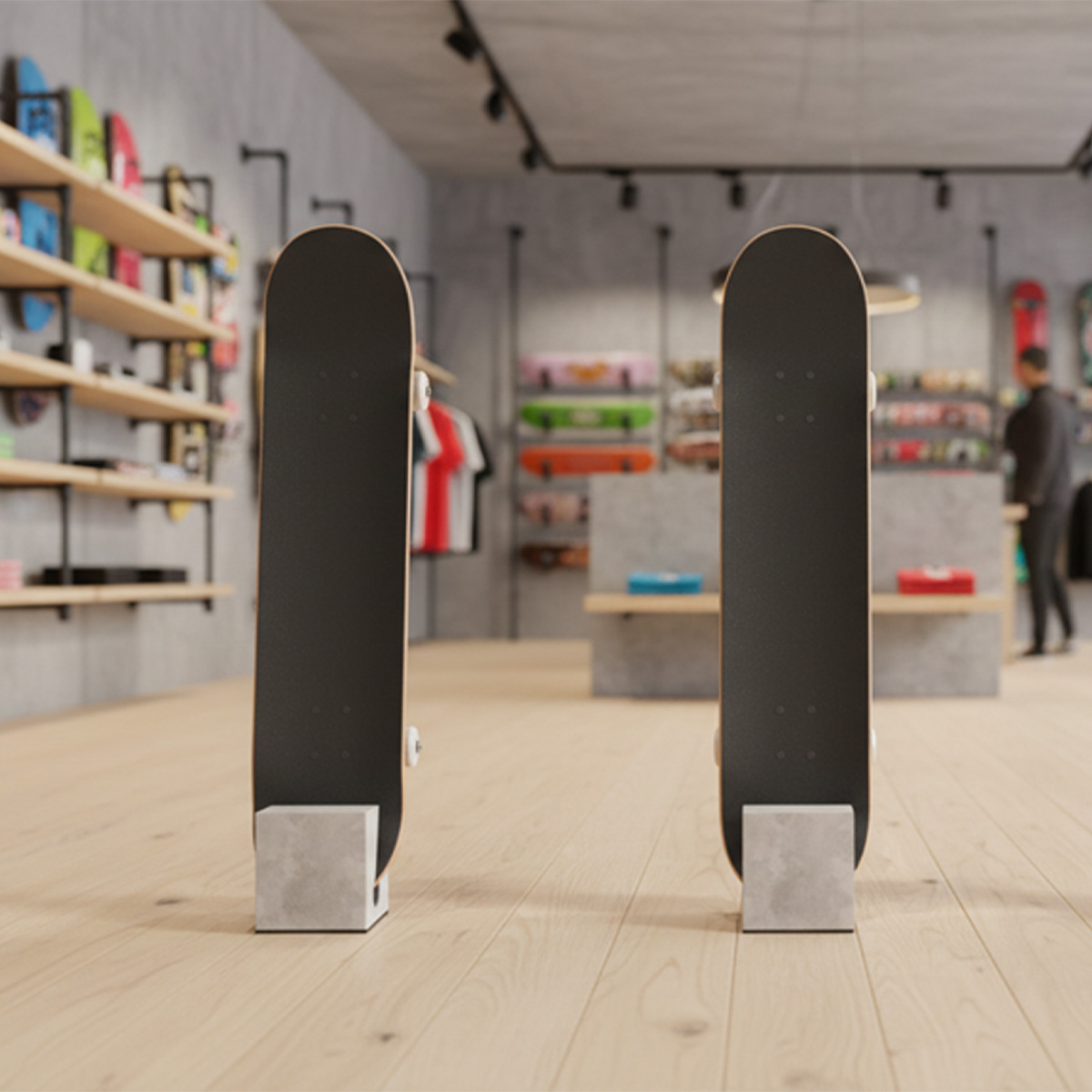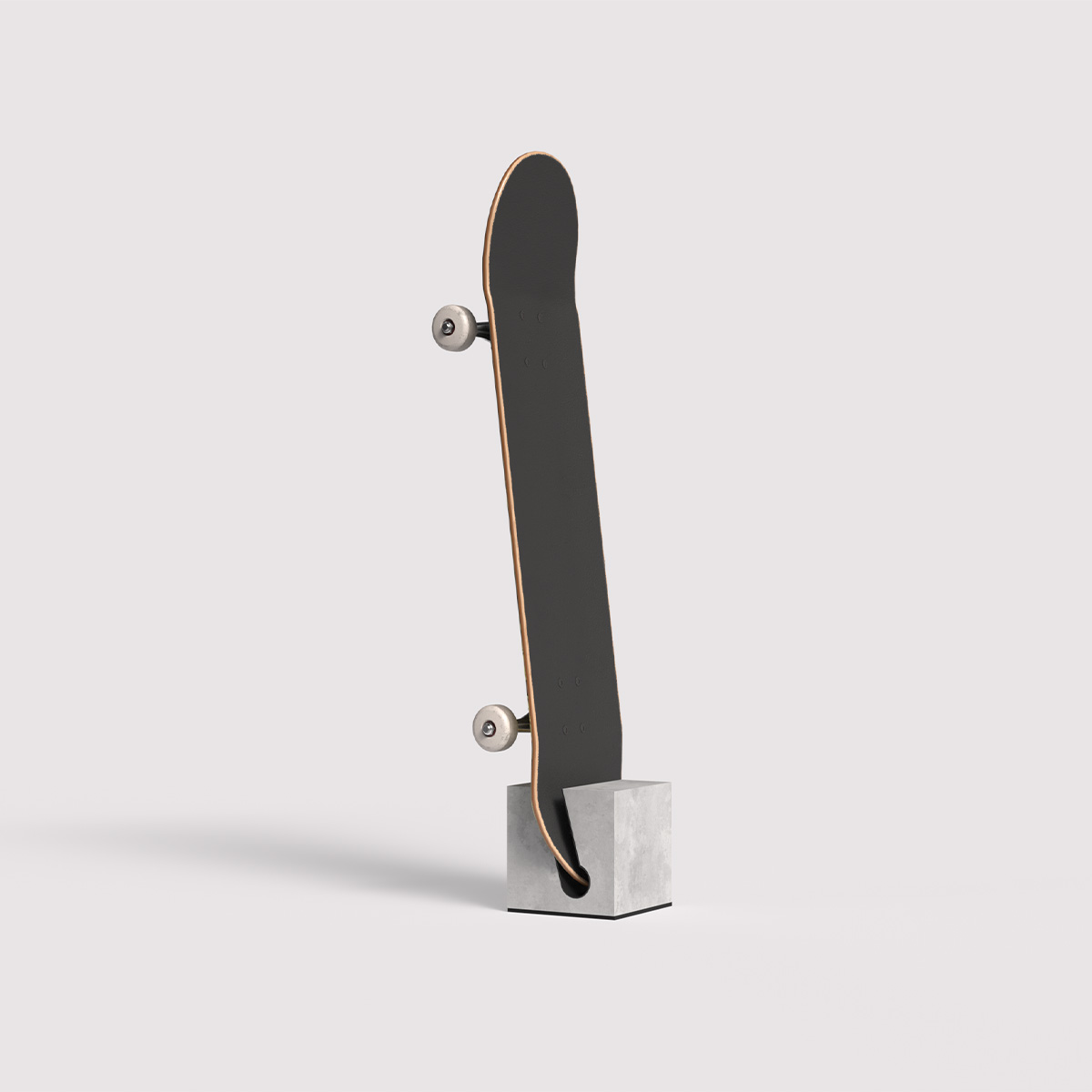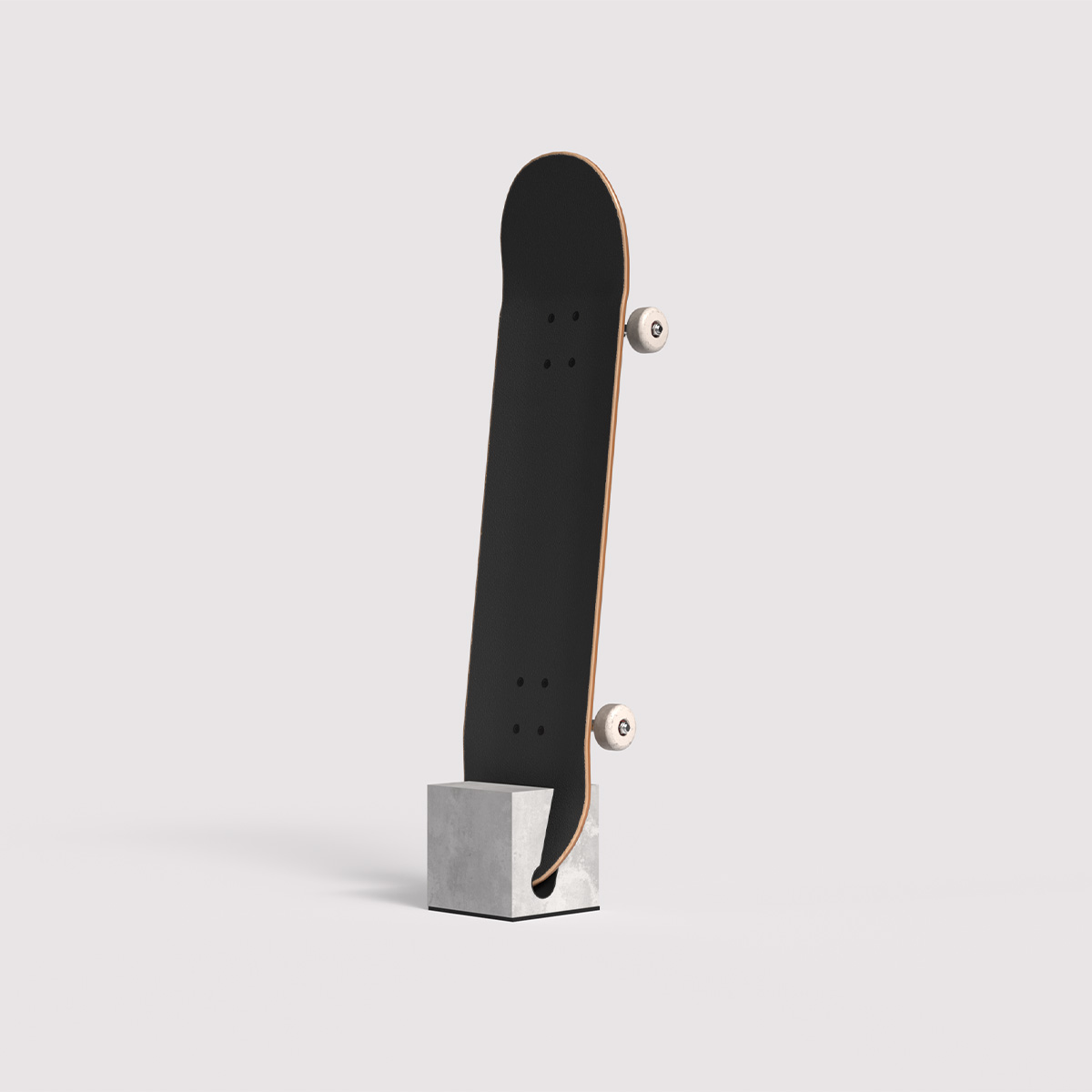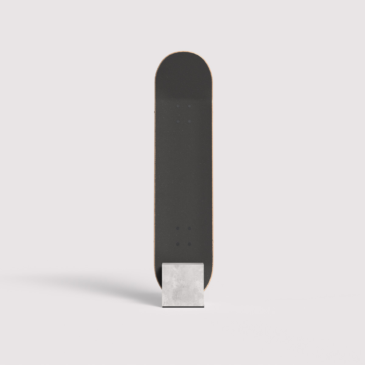 SKATE CLAMP concrete ist ein handgefertigter Skateboard-Stand aus massivem Beton – gemacht, um dein Deck oder dein komplettes Setup stilvoll zu präsentieren und aufzubewahren.